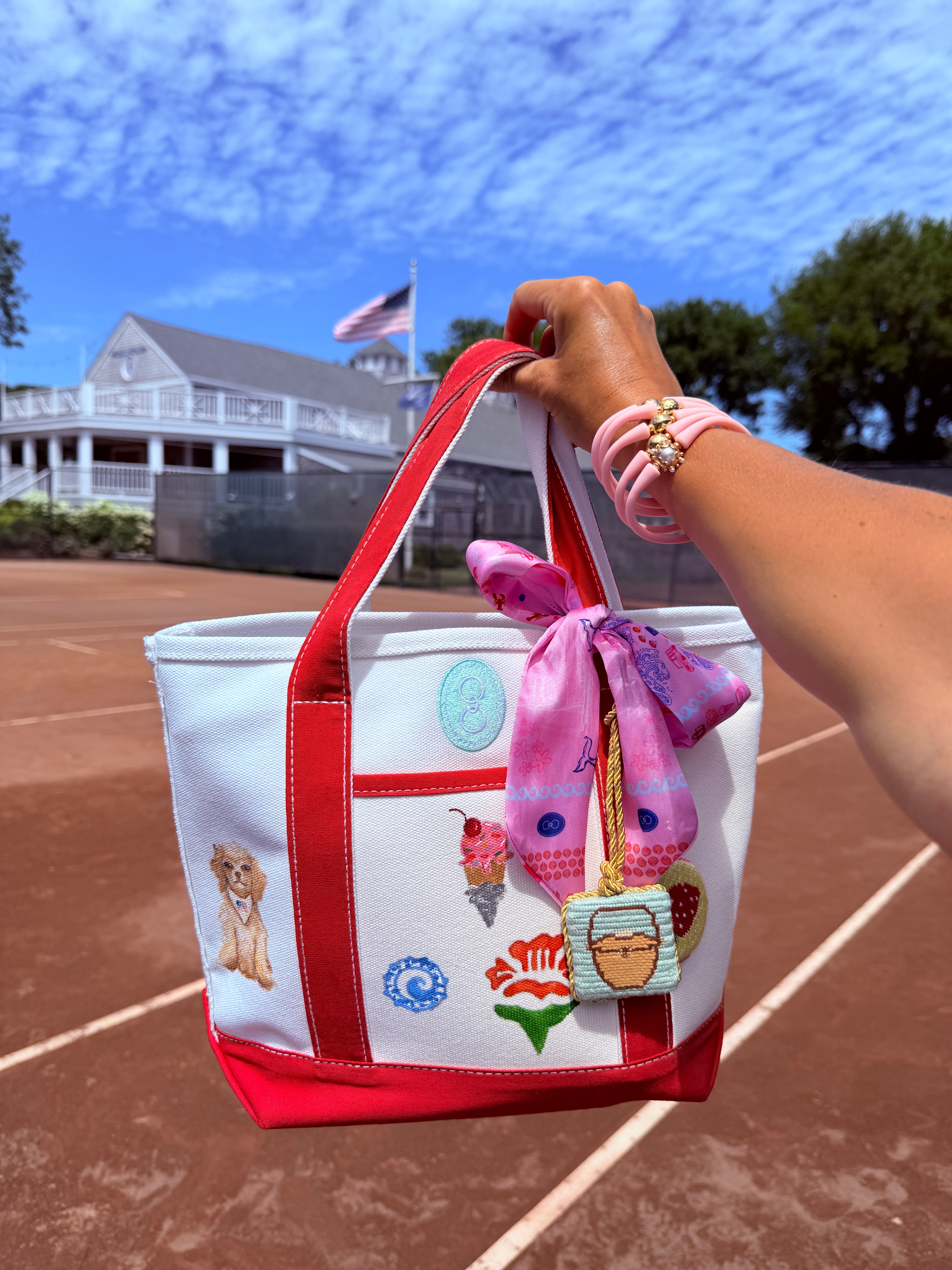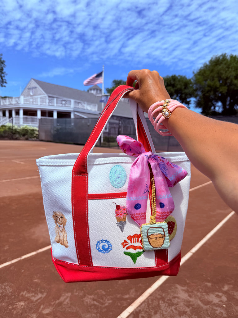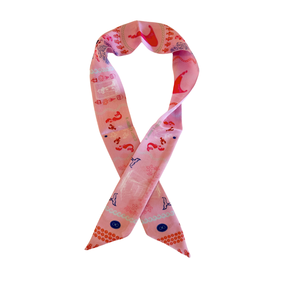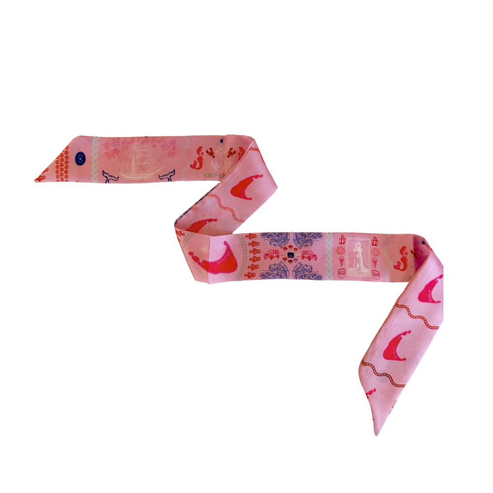 Bring the charm of Nantucket to your everyday with this delightful ACK Scarf. Featuring iconic island motifs rendered in a vibrant pink palette, this petite neck scarf captures the essence of coastal living with playful flair.