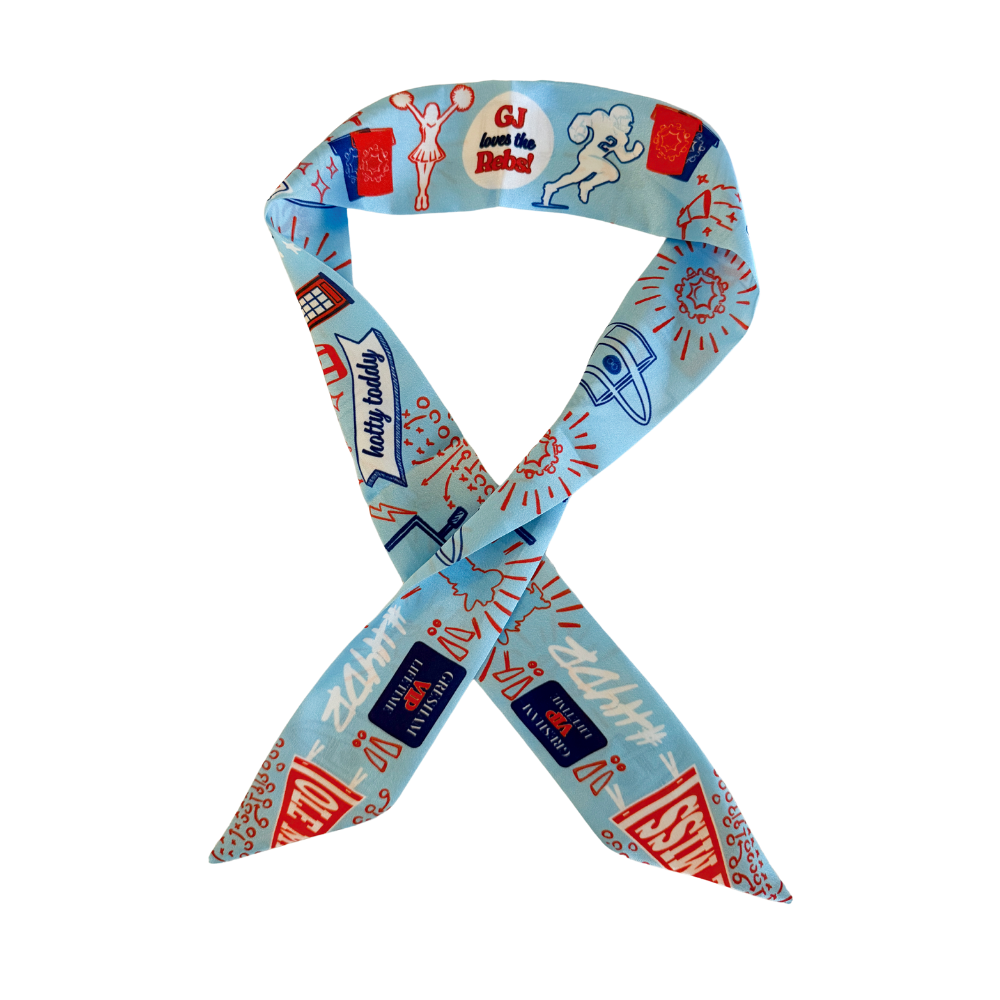Our exclusive scarves make the perfect accessory with their versatility - tie them, knot them, wear them, wrap them! Each scarf features a different design on the front and back and incorporates iconic and emblematic symbols.