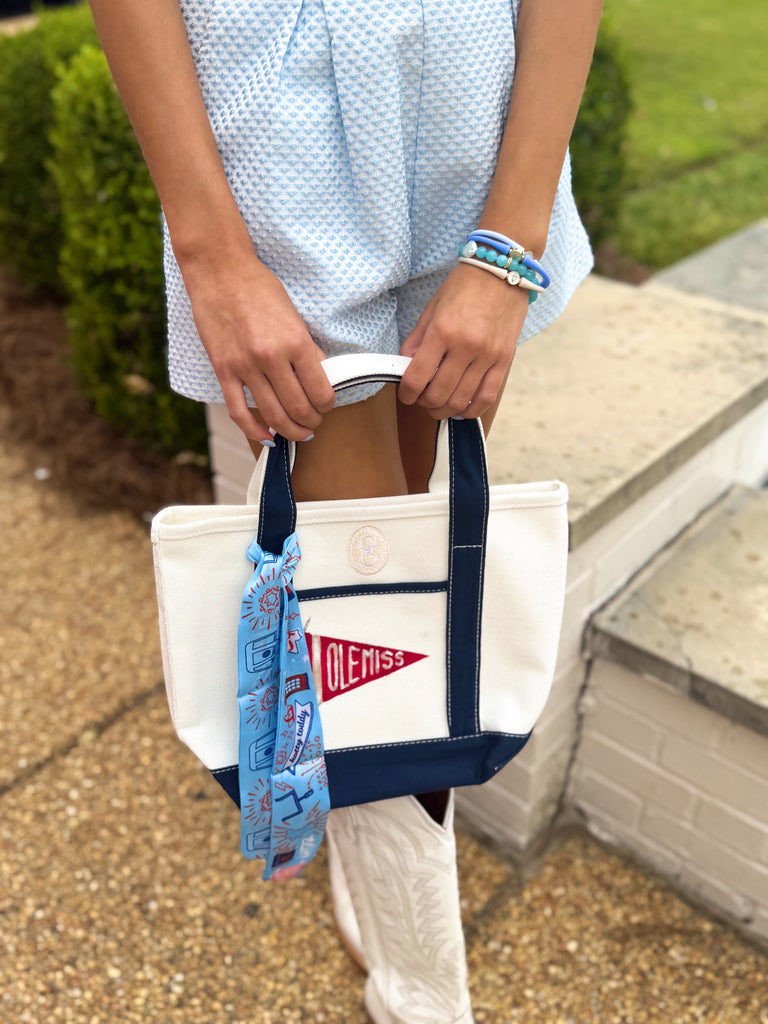Elevate your game day spirit with this striking Ole Miss Scarf in bold Rebel blue. Perfect for showing your school pride whether you're tailgating, cheering from the stands, or heading to campus.