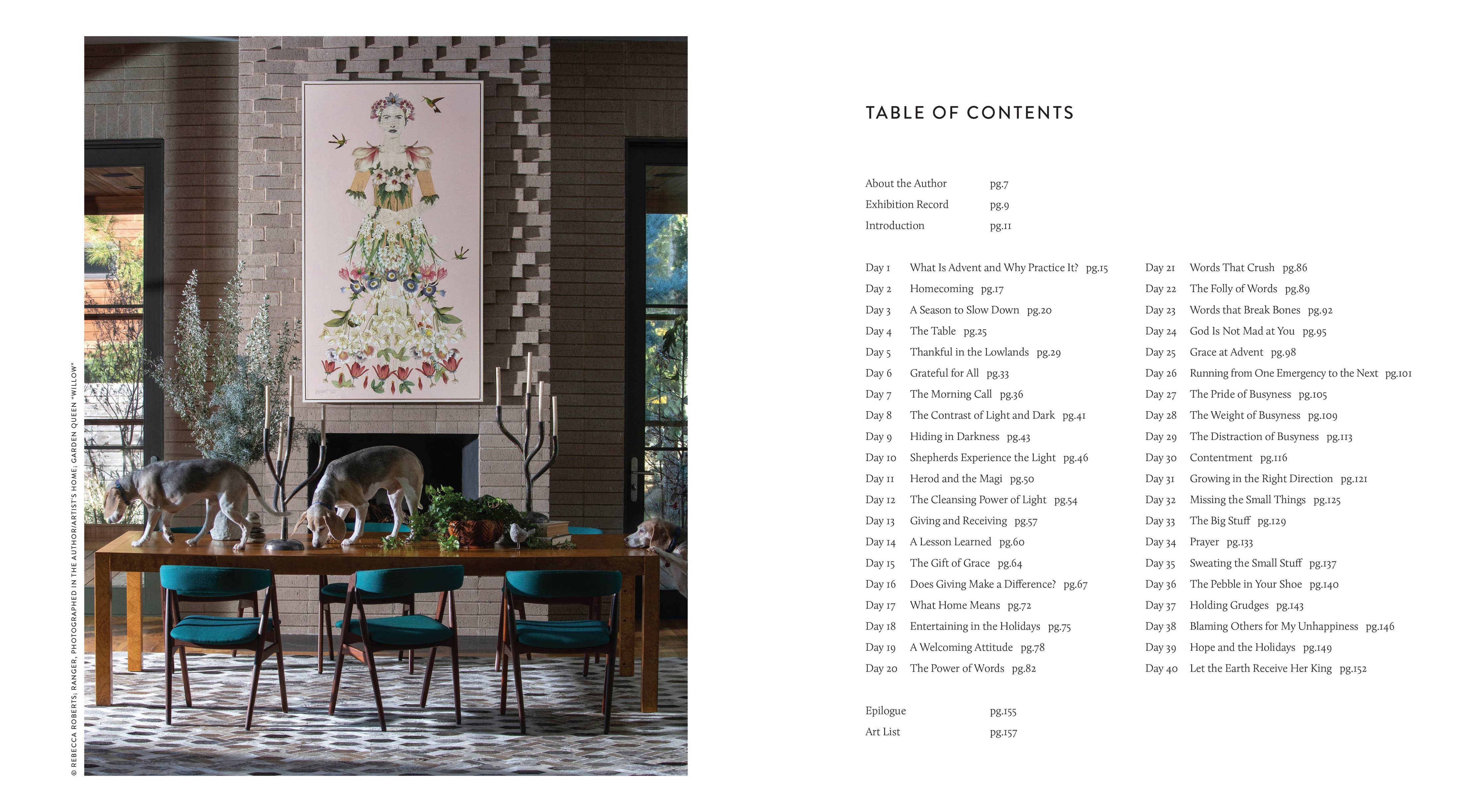 This book is a 40-day journey together through the Advent season with art, scriptures, and the written word. “Advent” simply means the arrival of a notable person, thing, or event. Christmas is the advent of Jesus Christ into the world. Your world. And mine. I encourage you to set aside time for the 40 days leading up to Christmas Day to prepare your heart and mind for this special season. May this book inspire and encourage you anytime of the year and become an experience you can enjoy over and over again.